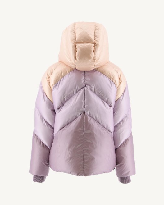 πίσω από ένα αστρικό κρύβεται ένα άλλο! για όσους δεν κατάφεραν να επιλέξουν ανάμεσα στα διαφορετικά χρώματα του κλασικού μοντέλου, η Jott προσφέρει αυτή τη σεζόν την εκδοχή της σε ελκυστικές αποχρώσεις του λιλά. Το υδατοαπωθητικό του καπιτονέ ψαροκόκαλο ολοκληρώνει τη μοντέρνα πινελιά αυτού του ελαφρύ και ζεστού σακάκι με φτερά και πούπουλα, με ψηλό γιακά και τσέπες με φερμουάρ.