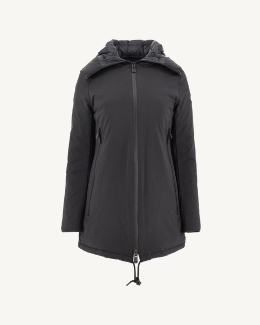 Το Siberie θα σας γοητεύσει με την εντυπωσιακή του εμφάνιση, γεμάτη πρακτικές λεπτομέρειες! αυτό το σακάκι μεσαίου μήκους, ίσιας κοπής είναι κατασκευασμένο από ένα εξαιρετικά καινοτόμο, ελαστικό και υδατοαπωθητικό τεχνικό ύφασμα. με το κορδόνι του στο κάτω μέρος, τον καλά καλυμμένο ψηλό γιακά, την κουκούλα και τις τρεις τσέπες με φερμουάρ (συμπεριλαμβανομένης της μίας στο εσωτερικό), θα είστε ζεστοί τον χειμώνα χωρίς συμβιβασμούς στο στυλ!