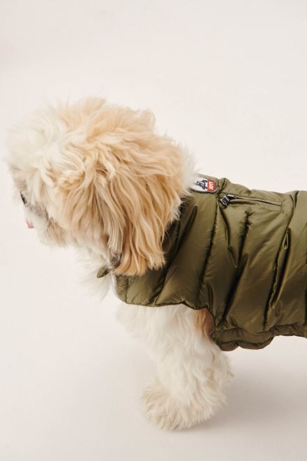 Ελάχιστα, δεν μας λείπει το χιούμορ και σκεφτήκαμε ότι θα θέλατε να προσφέρετε αυτή την υπέροχη ζακέτα στο σκυλάκι σας! Φτιαγμένο από το εμβληματικό καπιτονέ ύφασμα της μάρκας με φτερά και πούπουλα, θα κρατήσει το σκυλί σας ζεστό, έτοιμο να σας συνοδεύσει στις χειμερινές σας βόλτες.