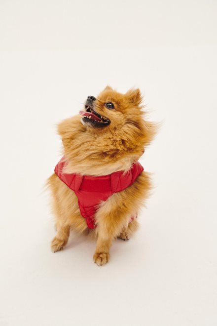 Ελάχιστα, δεν μας λείπει το χιούμορ και σκεφτήκαμε ότι θα θέλατε να προσφέρετε αυτή την υπέροχη ζακέτα στο σκυλάκι σας! Φτιαγμένο από το εμβληματικό καπιτονέ ύφασμα της μάρκας με φτερά και πούπουλα, θα κρατήσει τον σκύλο σας ζεστό, έτοιμο να σας συνοδεύσει στις χειμερινές σας βόλτες.