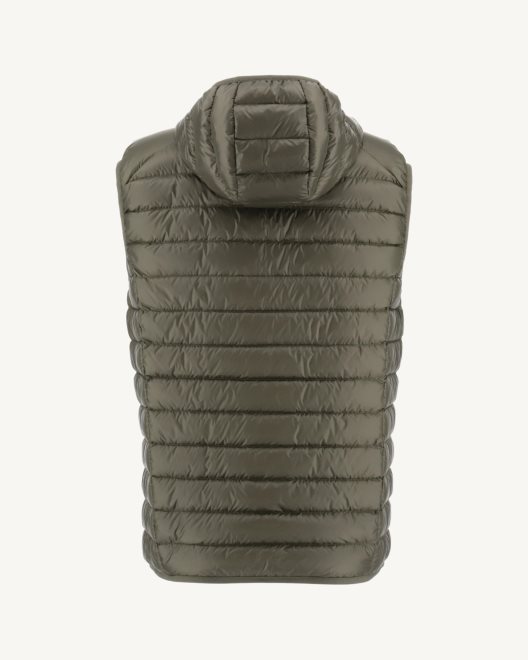 το μοντέλο Pat, αμάνικο με κουκούλα, έχει μοντέρνο και αστικό πνεύμα. Το σακάκι διαθέτει δύο αόρατες τσέπες με φερμουάρ, καθώς και επένδυση με πούπουλα.