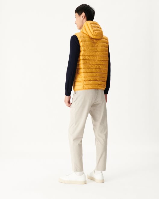 το μοντέλο Pat, αμάνικο με κουκούλα, έχει μοντέρνο και αστικό πνεύμα. Το σακάκι διαθέτει δύο αόρατες τσέπες με φερμουάρ, καθώς και επένδυση με πούπουλα.