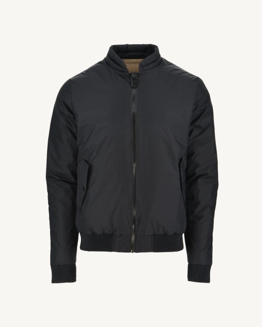 bombay πολλαπλασιάζει τα σαγηνευτικά στοιχεία με το ανθεκτικό ύφασμά του χωρίς ραφές, με επένδυση και γέμιση με φτερά και πούπουλα για άνεση, και την αναστρέψιμη φύση του που προσφέρει τη δυνατότητα αλλαγής μπουφάν χωρίς να τα αλλάζετε! είναι επίσης πολύ κομψό με το μικρό γιακά του αξιωματικού, τις δύο τσέπες με πτερύγια που κλείνουν με ένα κουμπί και τις νευρώσεις του στους καρπούς και στο κάτω μέρος.
