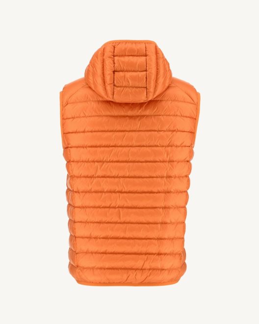 καινούργιο με κουκούλα αμάνικο πουπουλένιο πορτοκαλί μπουφάν