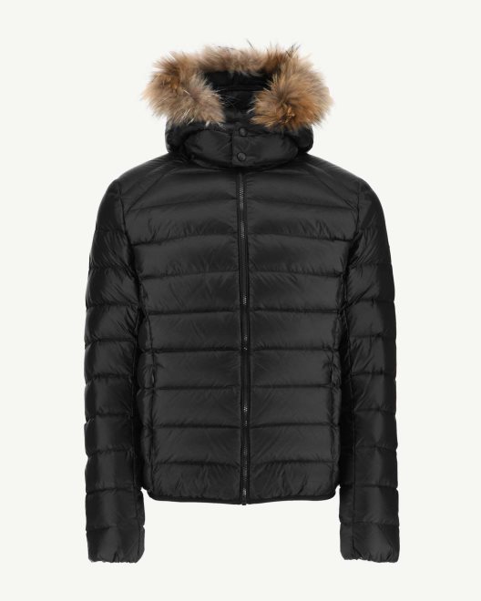 στην ακραία κρύα συλλογή, αποκτήστε το κύρος πουπουλένιο μπουφάν! Ελαφρύ και υδατοαπωθητικό για να σας προστατεύει από τις κακές καιρικές συνθήκες, εφαρμόζει στενά παρά το πολύ ζεστό φτερό και πουπουλένιο γέμισμα, έχει λεπτή εφαρμογή, δύο αόρατες πλαϊνές τσέπες και μια εσωτερική τσέπη, καθώς και αφαιρούμενη κουκούλα.